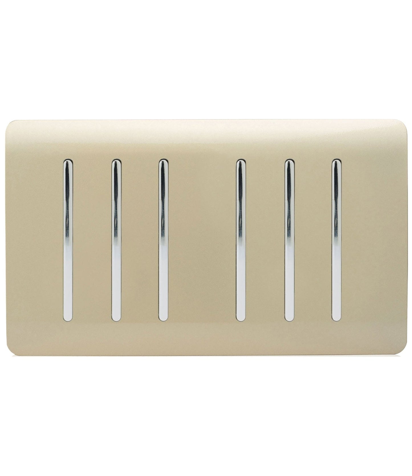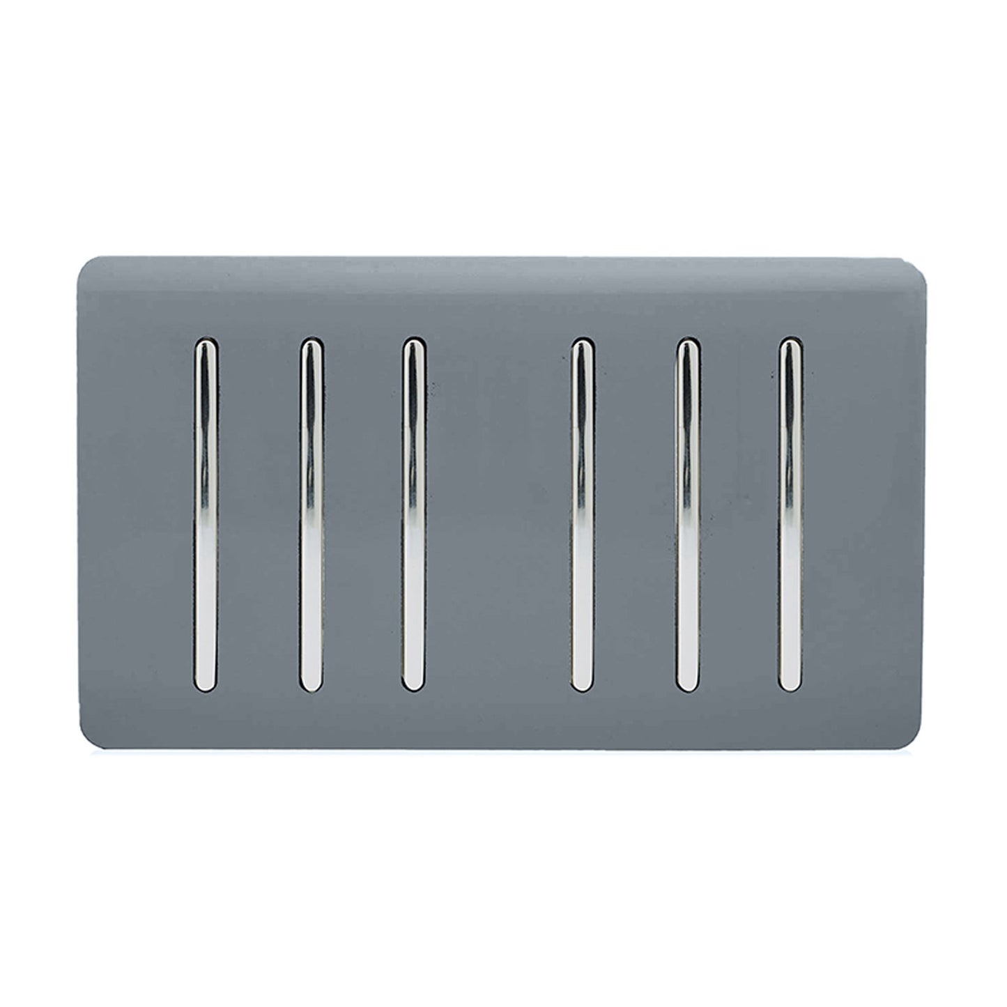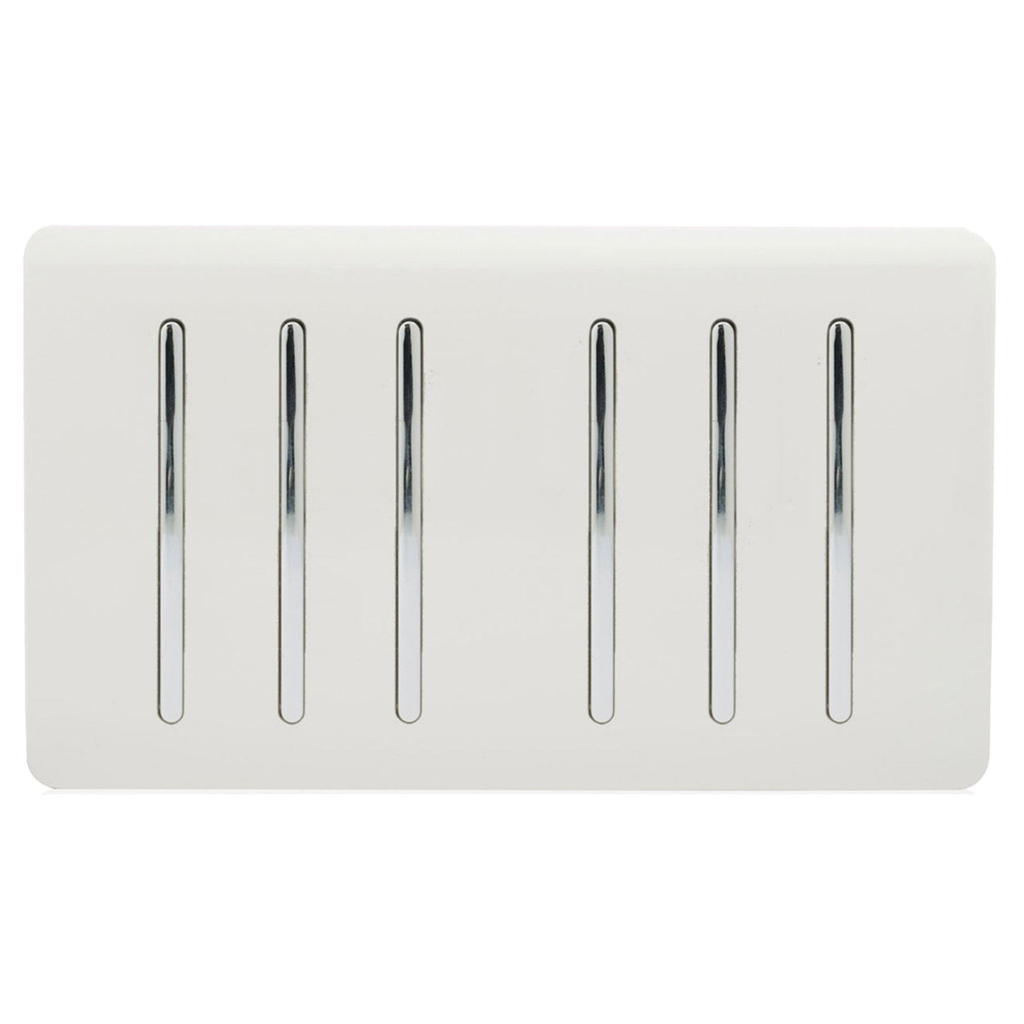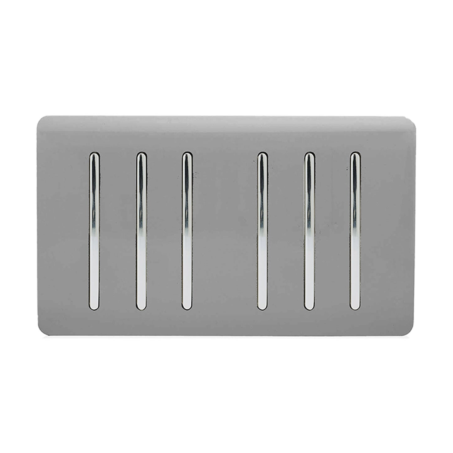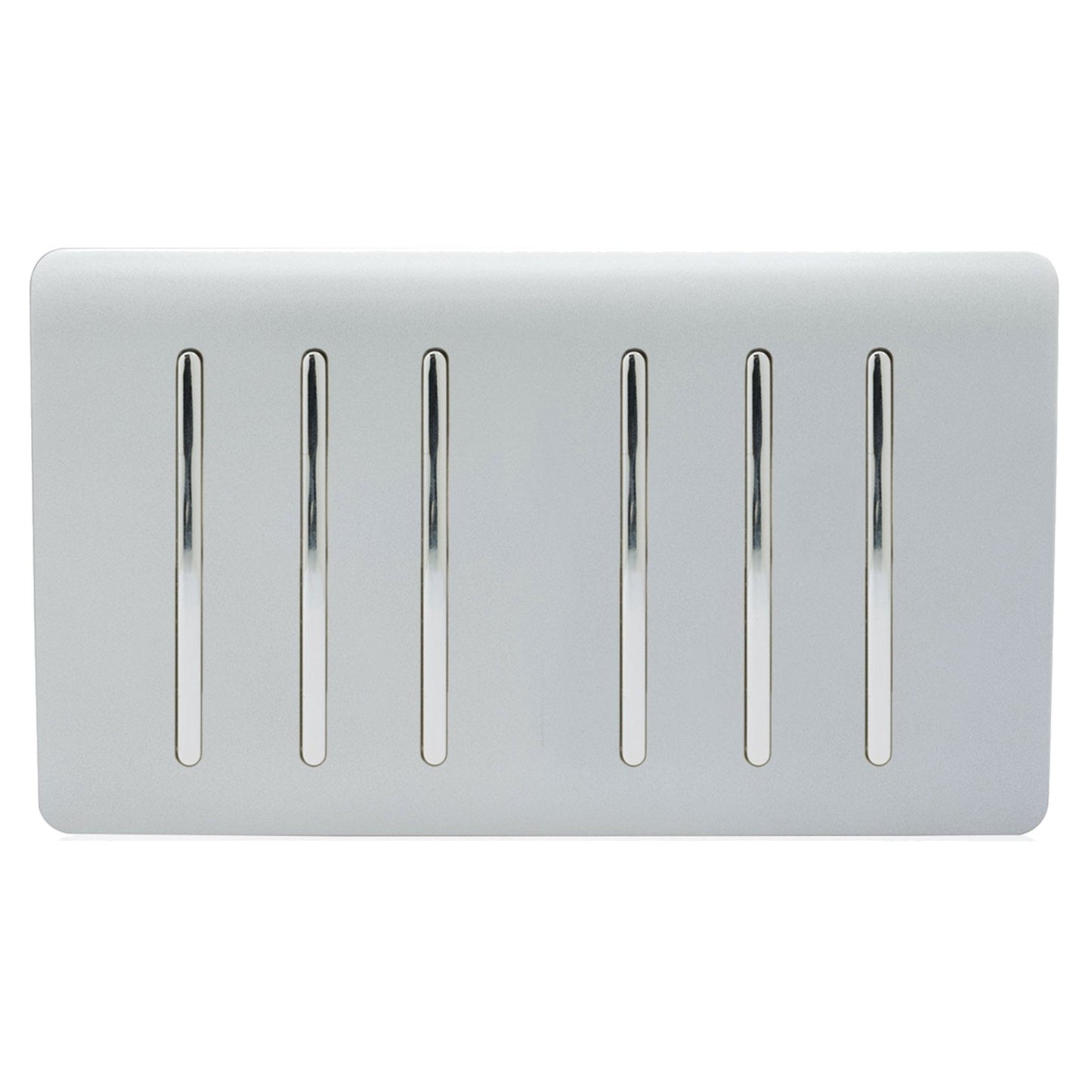 Trendi, Artistic Modern 6 Gang 2 Way 10 Amp Rocker Twin Plate , BRITISH MADE, (35mm Back Box Required)