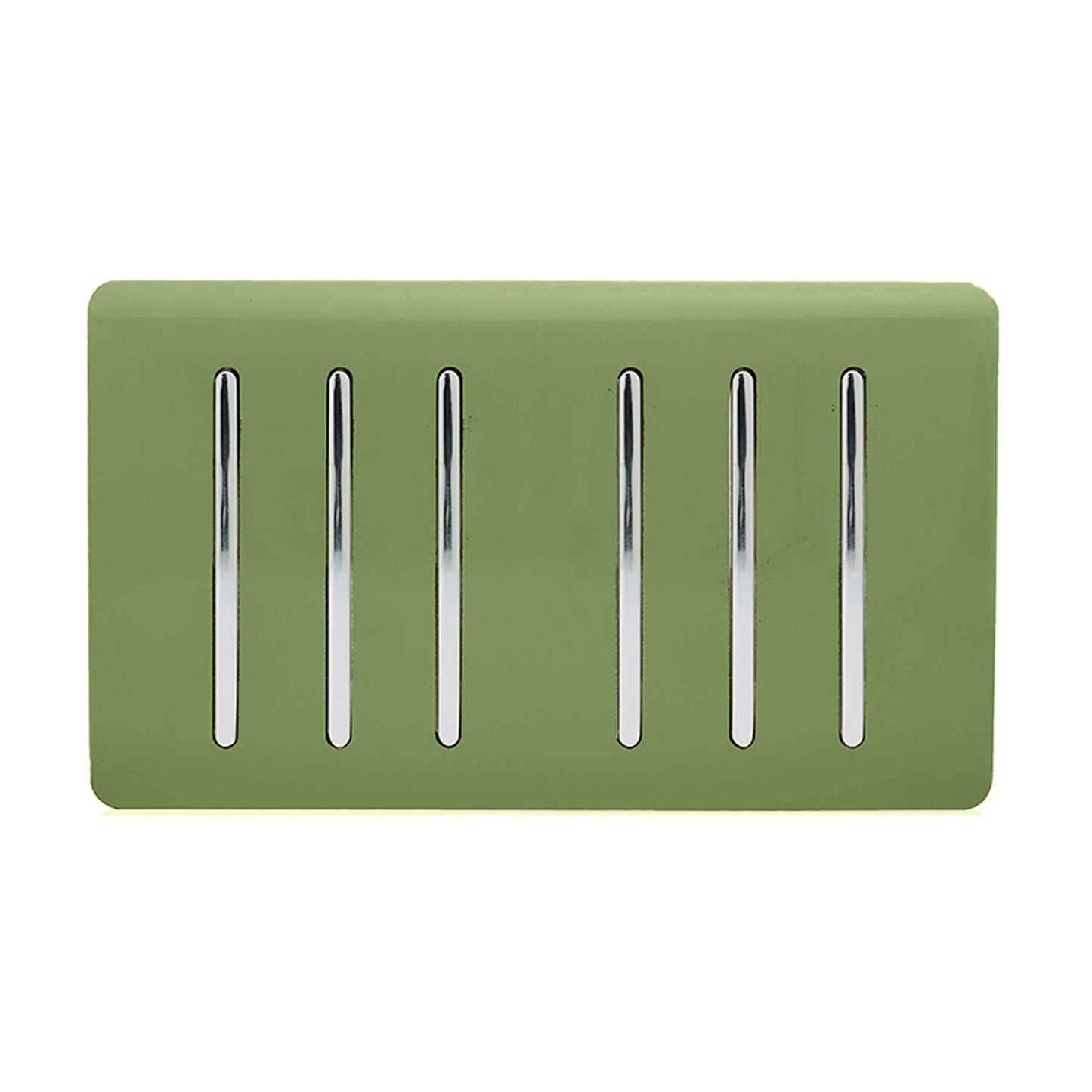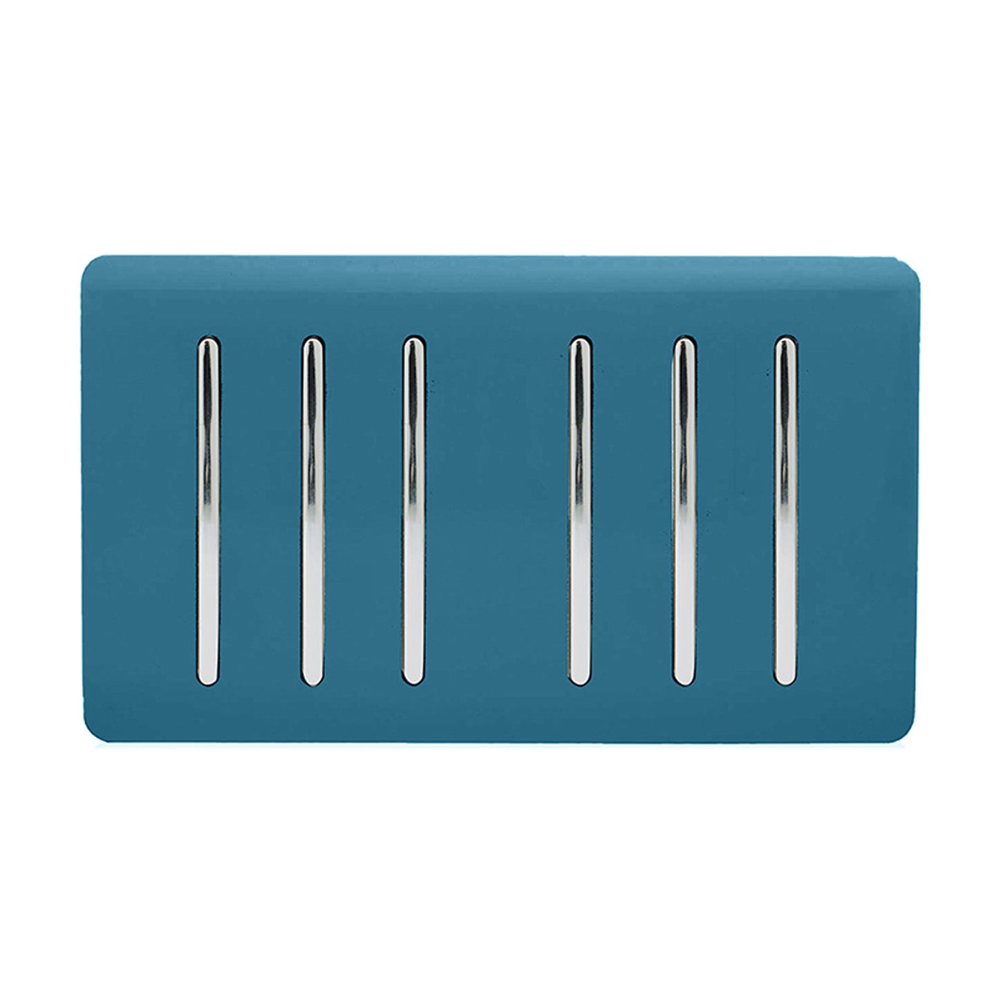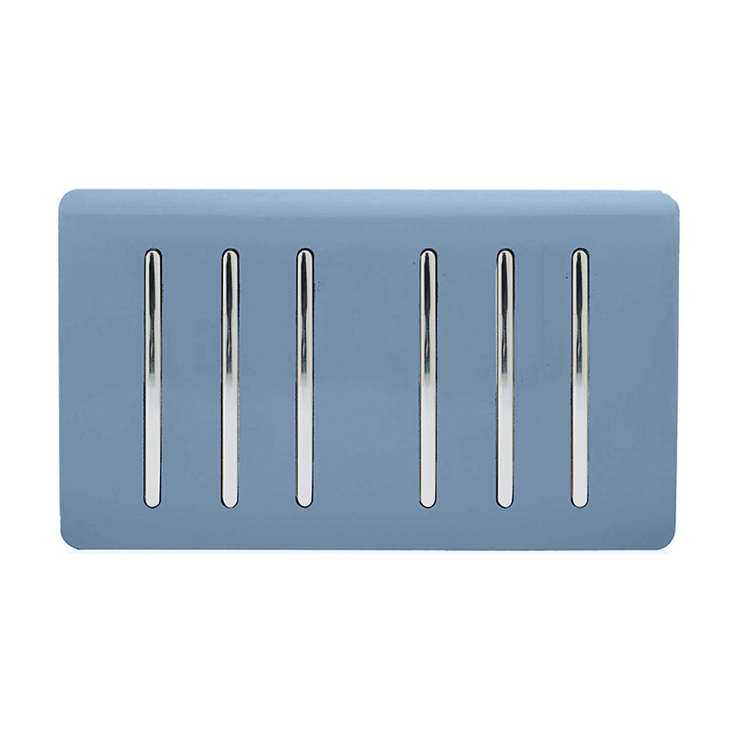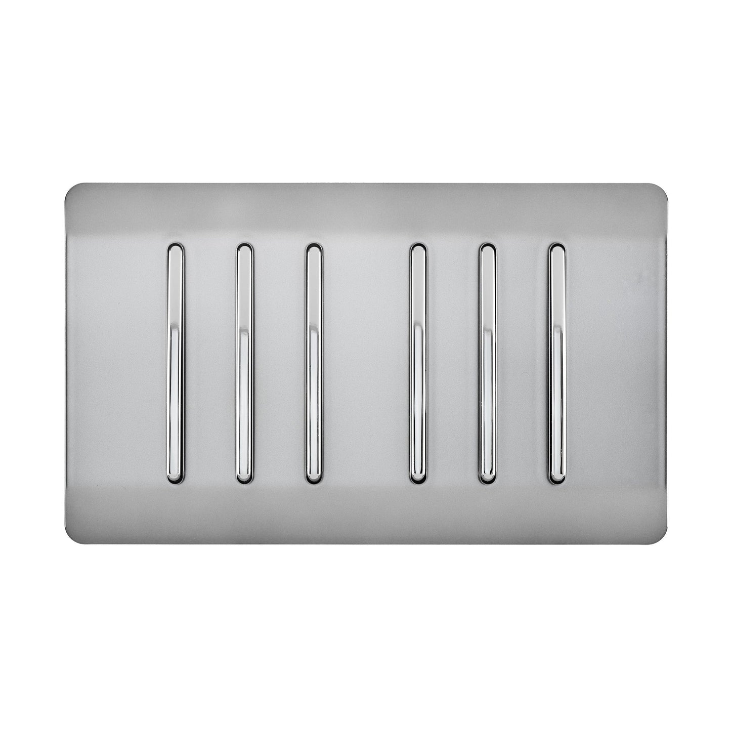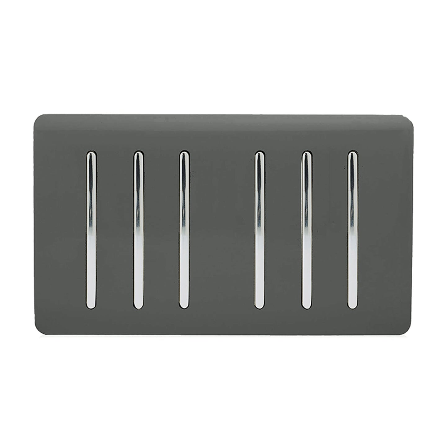 Trendi, Artistic Modern 6 Gang 2 Way 10 Amp Rocker Twin Plate , BRITISH MADE, (35mm Back Box Required)