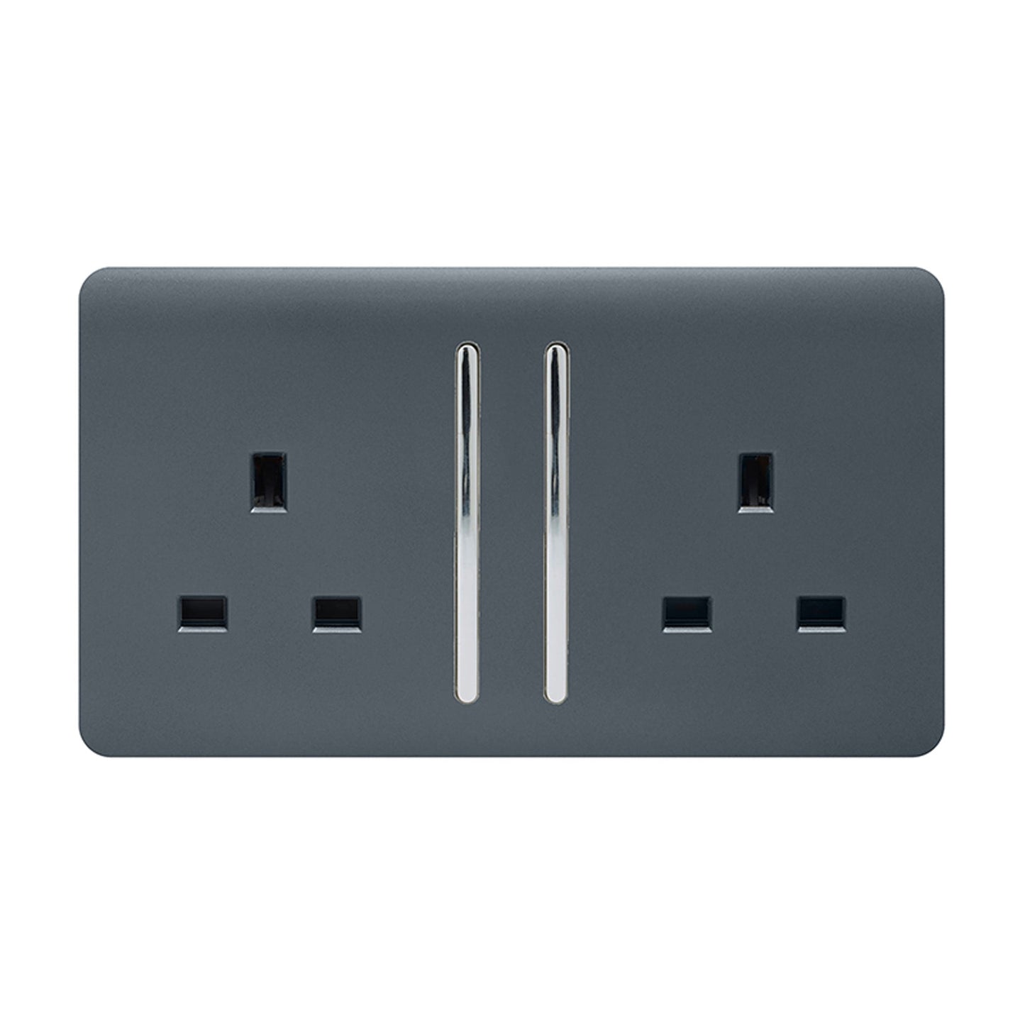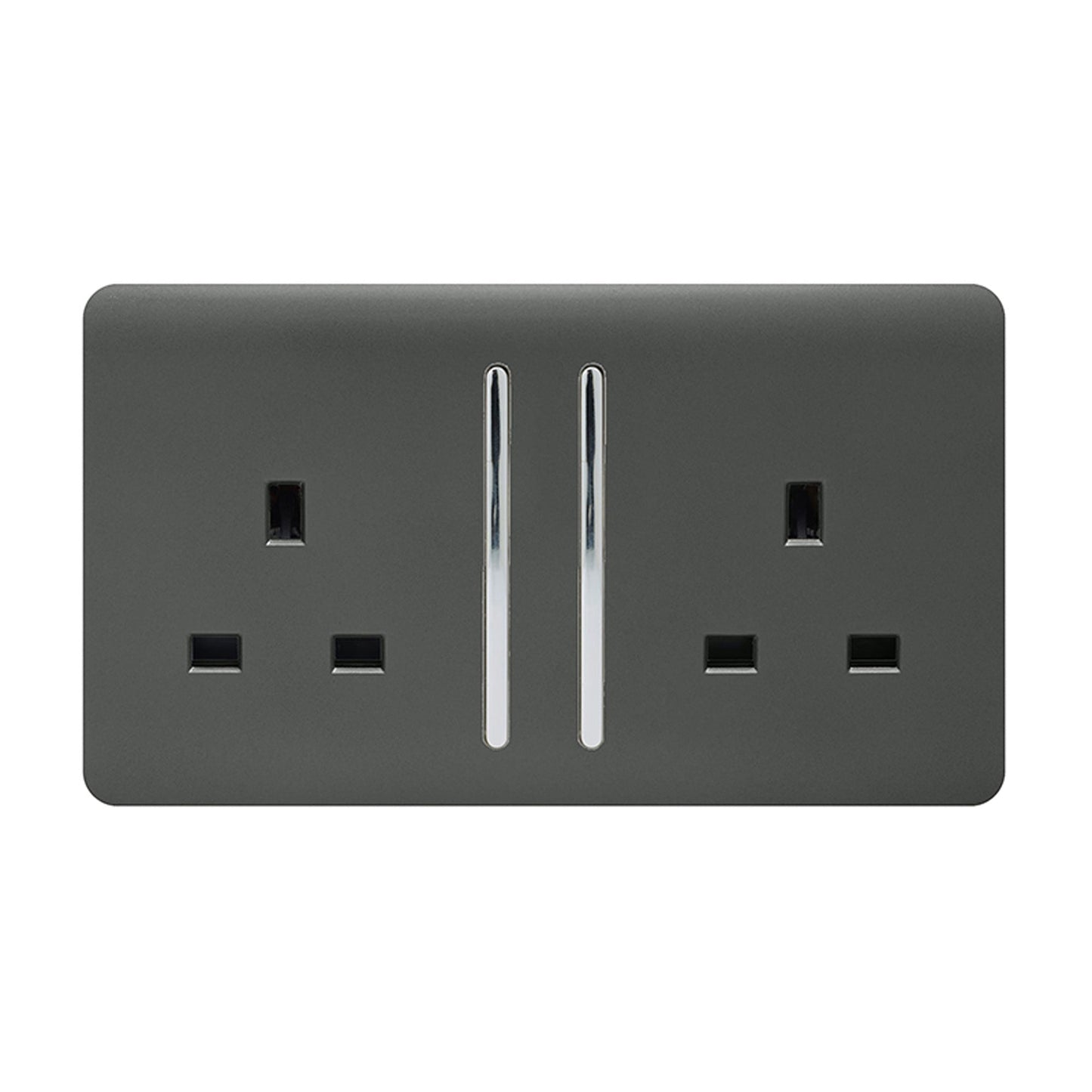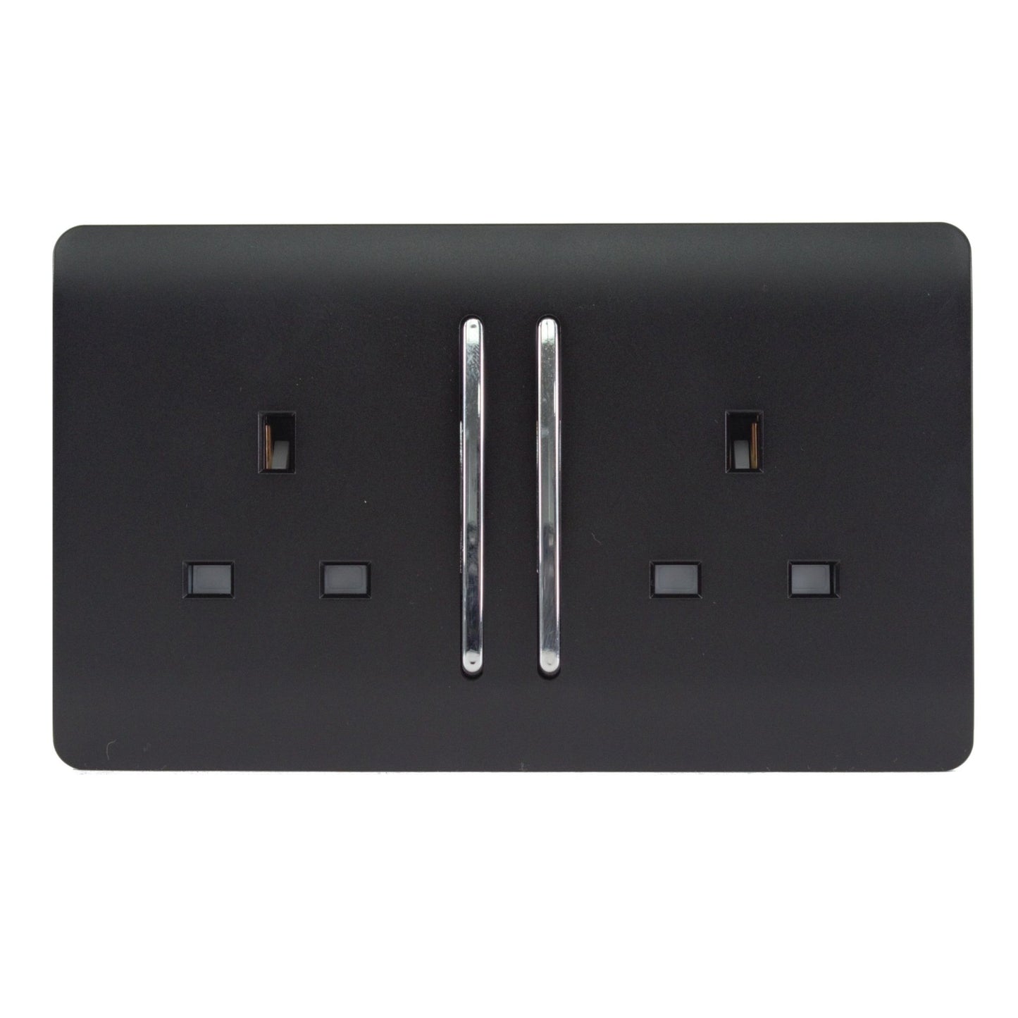 Trendi, Artistic Modern 2 Gang 13Amp Long Switched Double Socket , BRITISH MADE, (25mm Back Box Required)