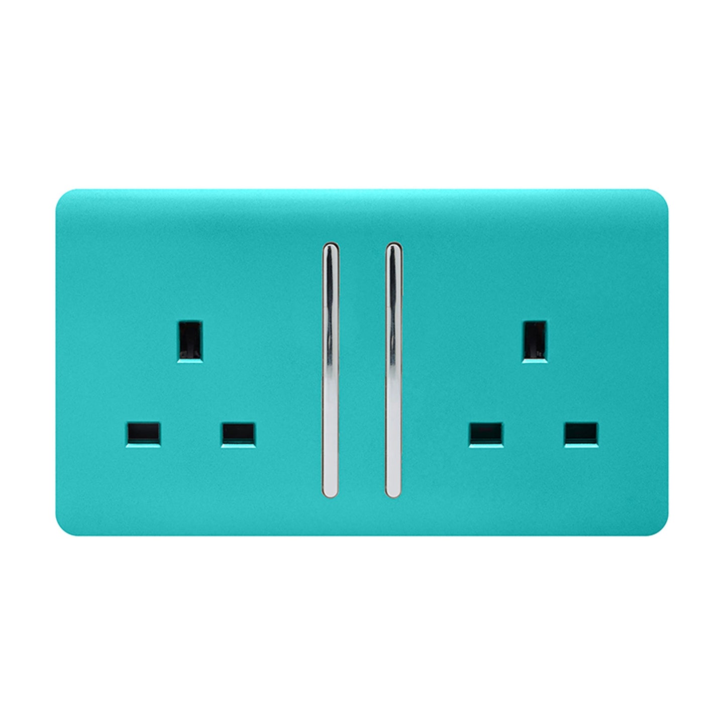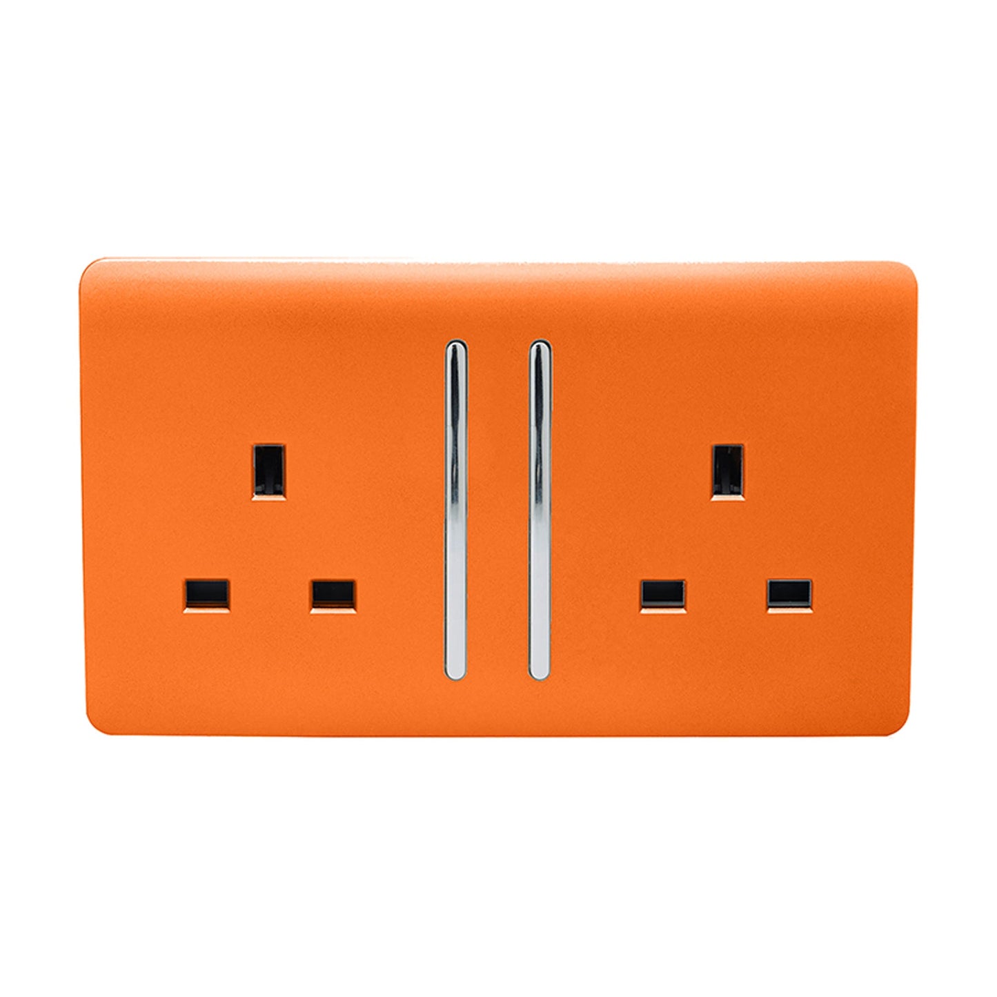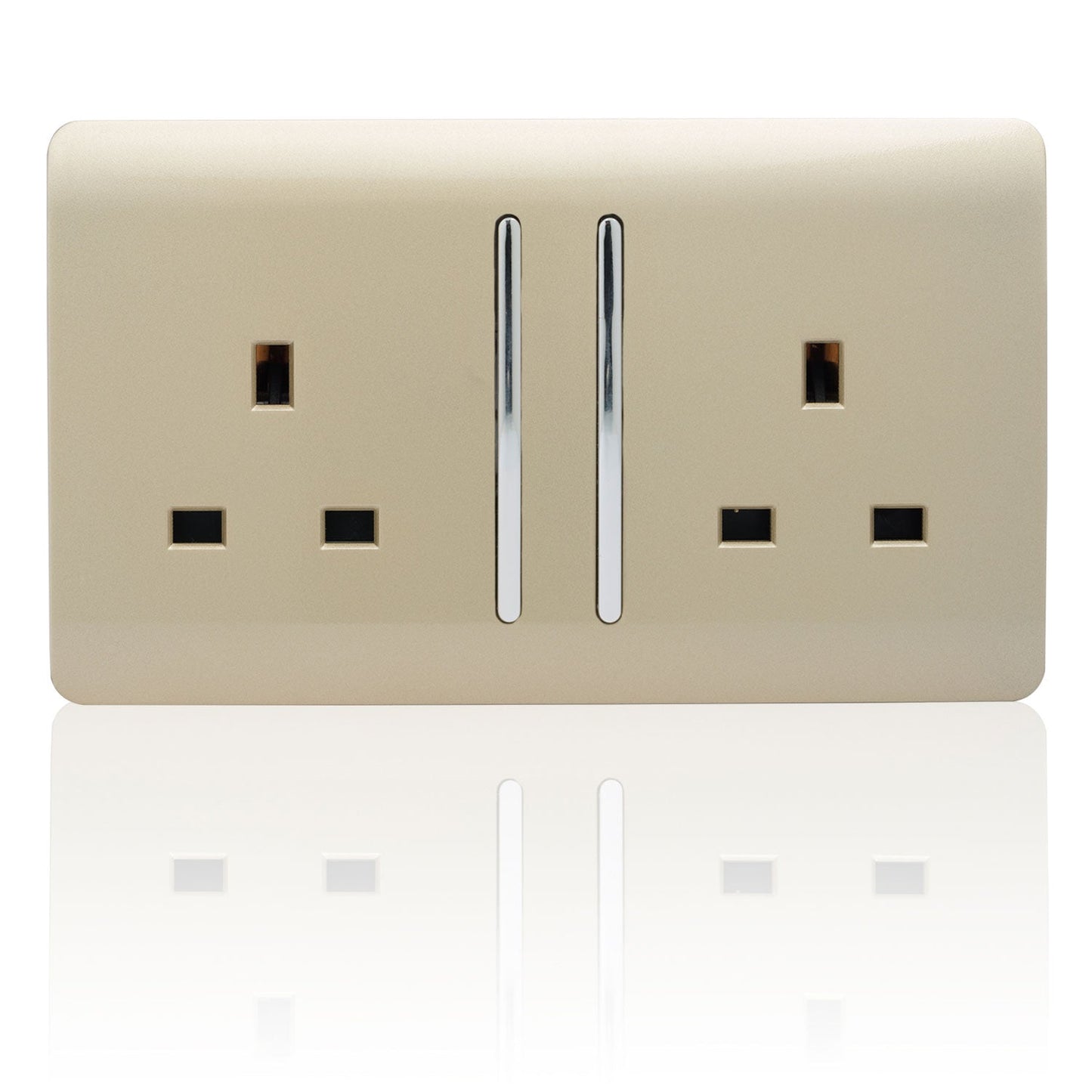 Trendi, Artistic Modern 2 Gang 13Amp Long Switched Double Socket , BRITISH MADE, (25mm Back Box Required)