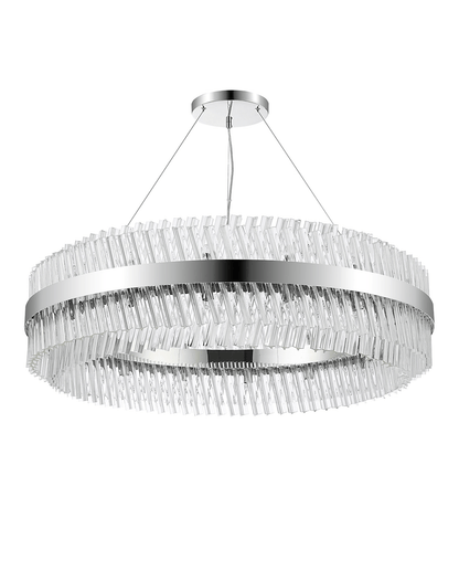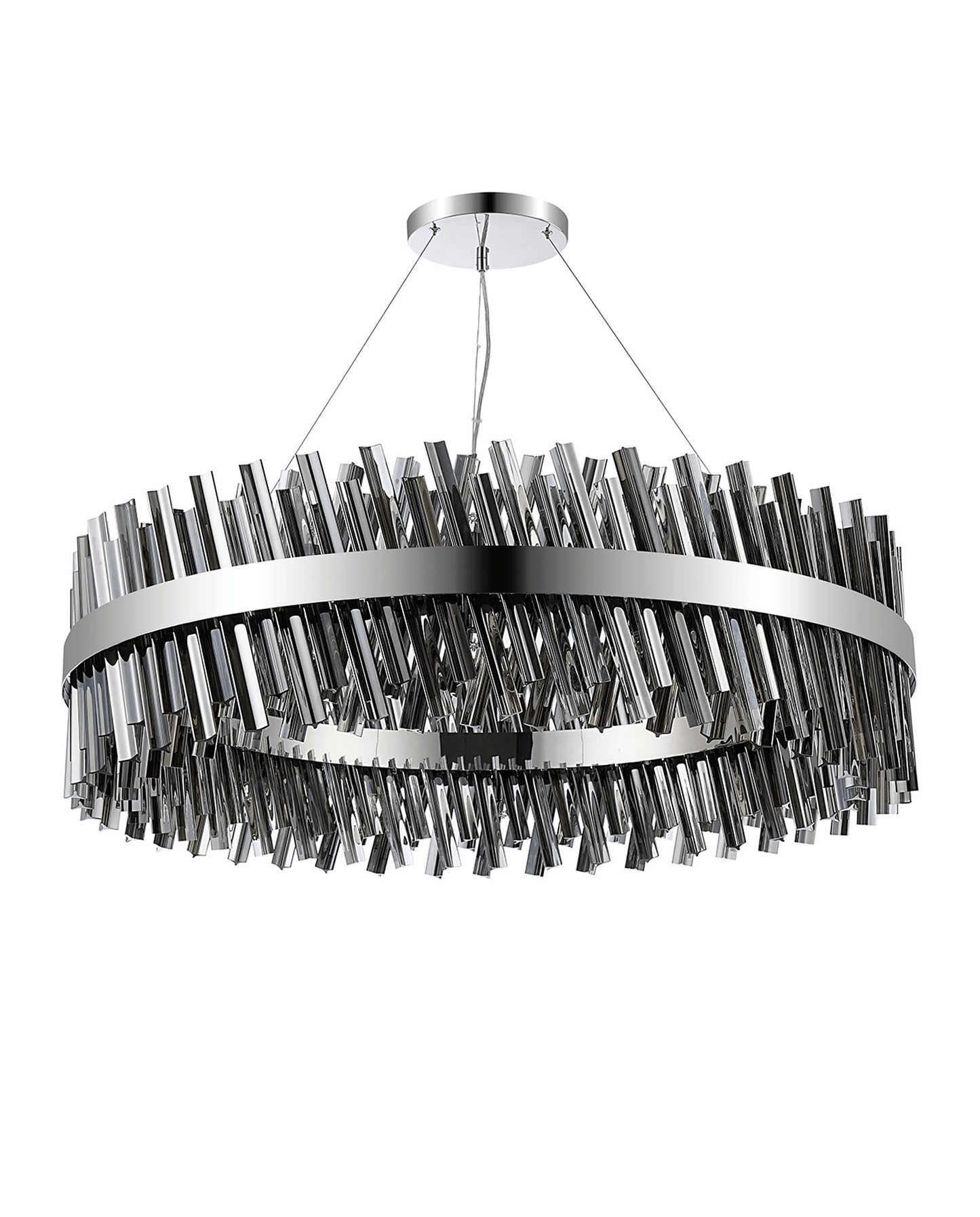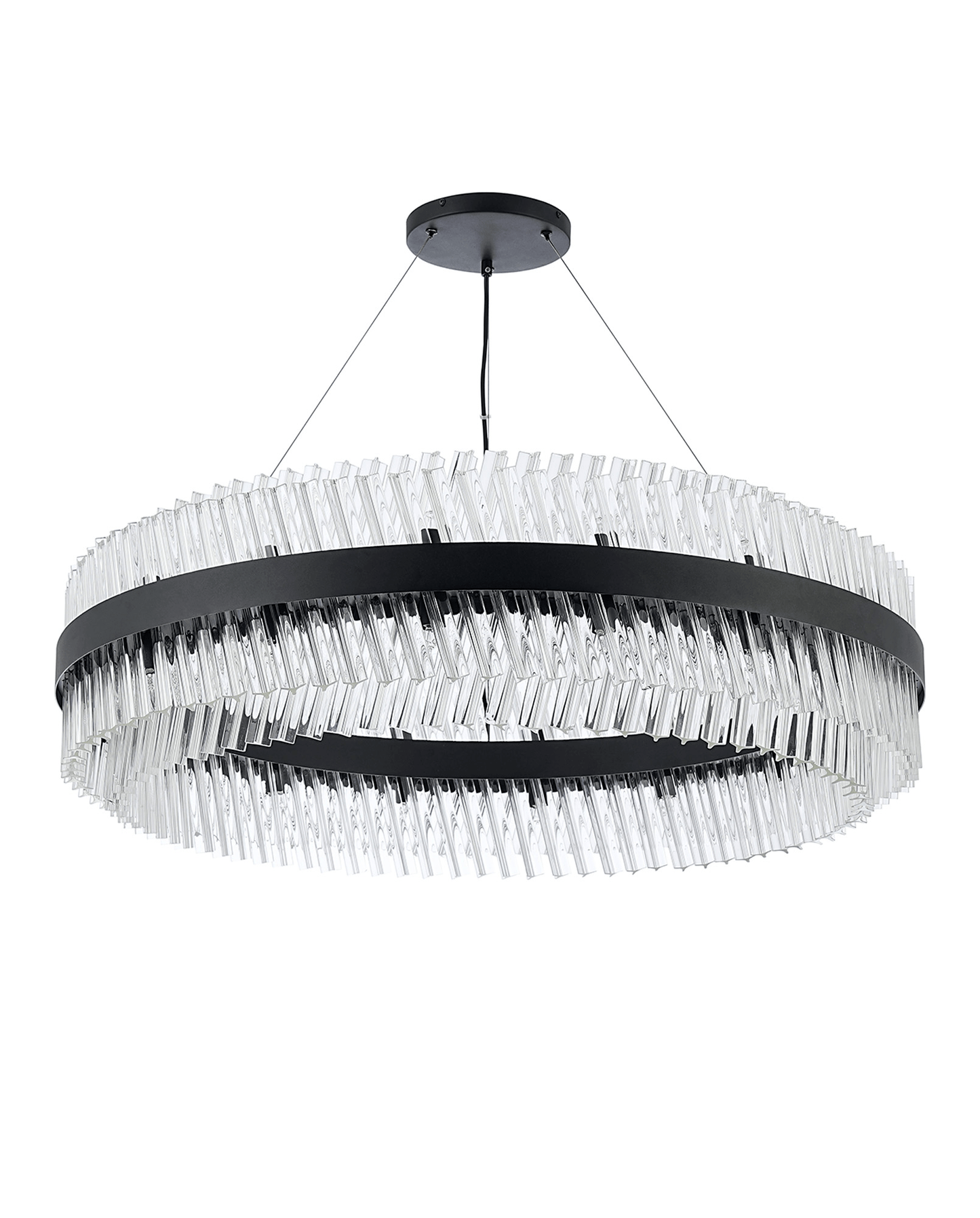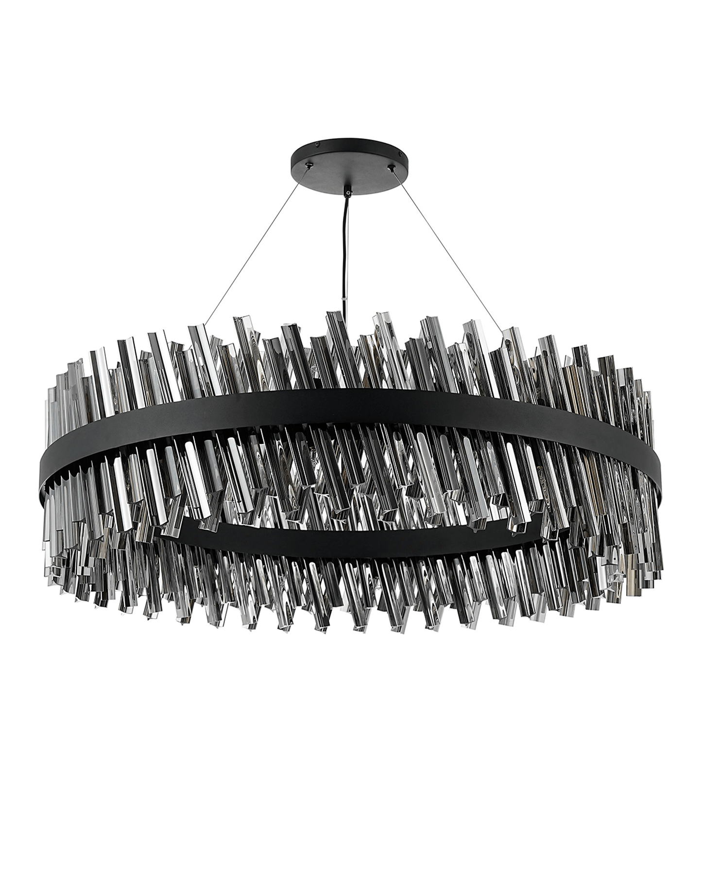 The Triton XXL Round Pendant is an elegant solution to a modern lighting fixture. Boasting a wide selection of frame and glass colour combinations to choose from, you can personalize the lamp to suit your style. Its unique feature of mixing long and short glasses allows for two different visual options; fitted vertically for a clean cylindrical outline, or at a diagonal angle for an uneven decorative effect.