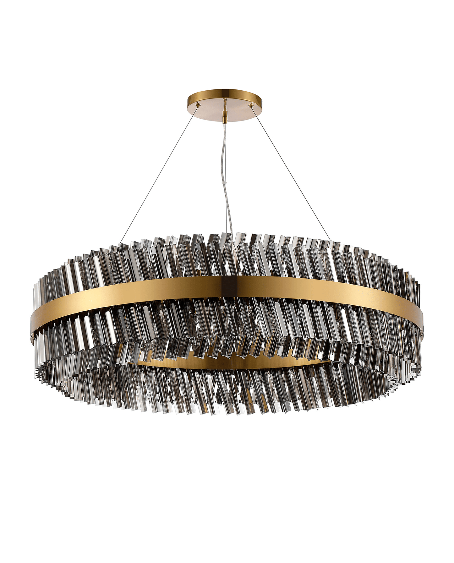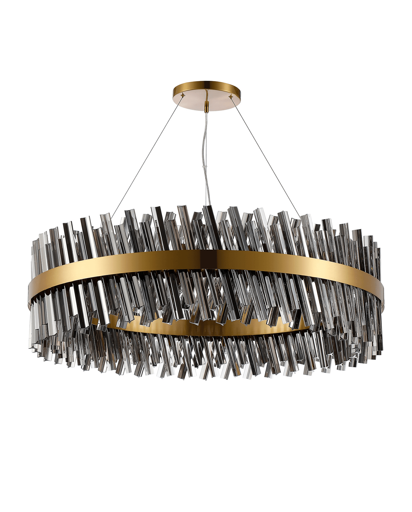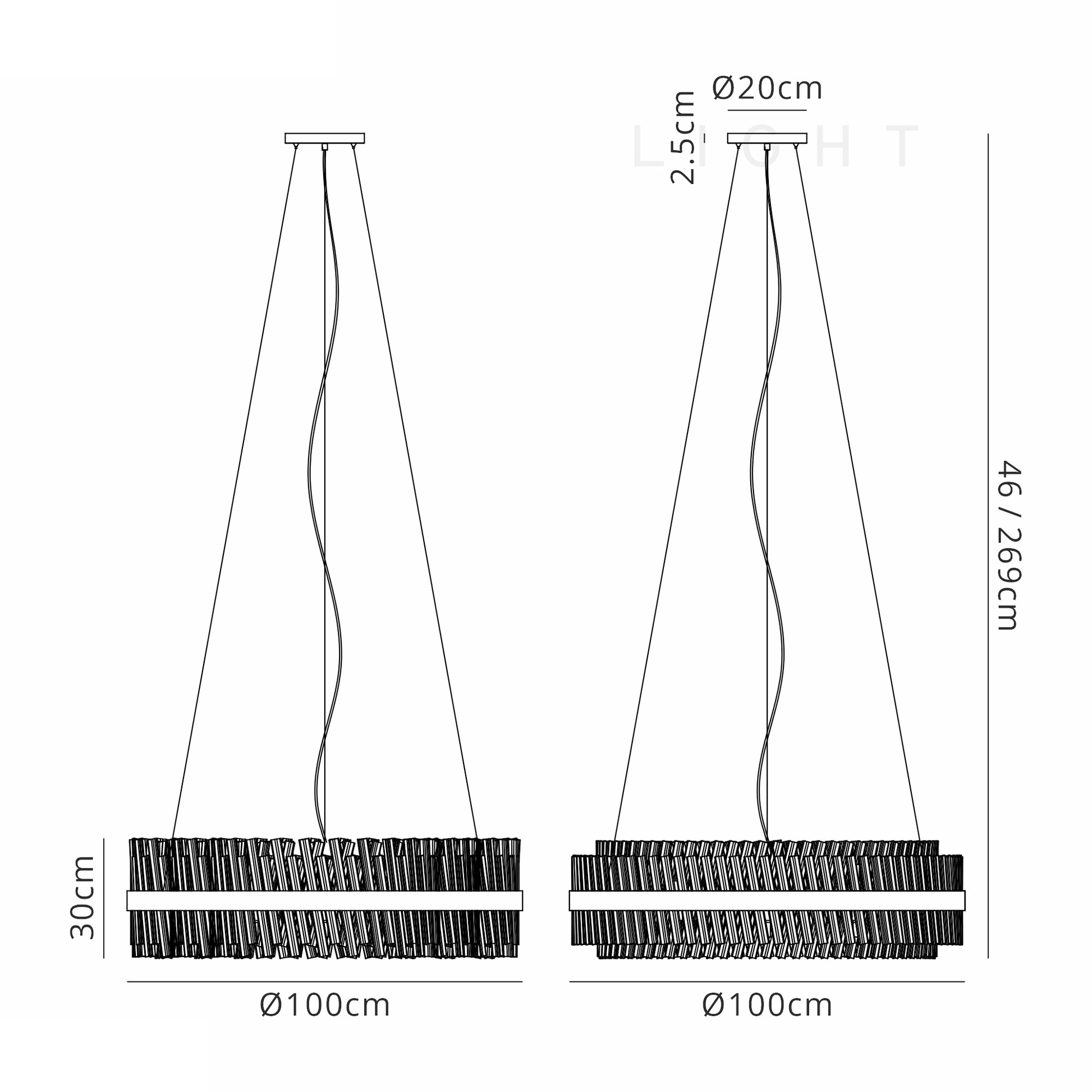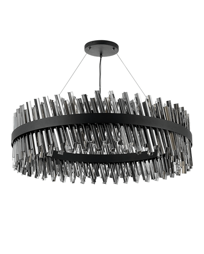 The Triton XXL Round Pendant is an elegant solution to a modern lighting fixture. Boasting a wide selection of frame and glass colour combinations to choose from, you can personalize the lamp to suit your style. Its unique feature of mixing long and short glasses allows for two different visual options; fitted vertically for a clean cylindrical outline, or at a diagonal angle for an uneven decorative effect.
