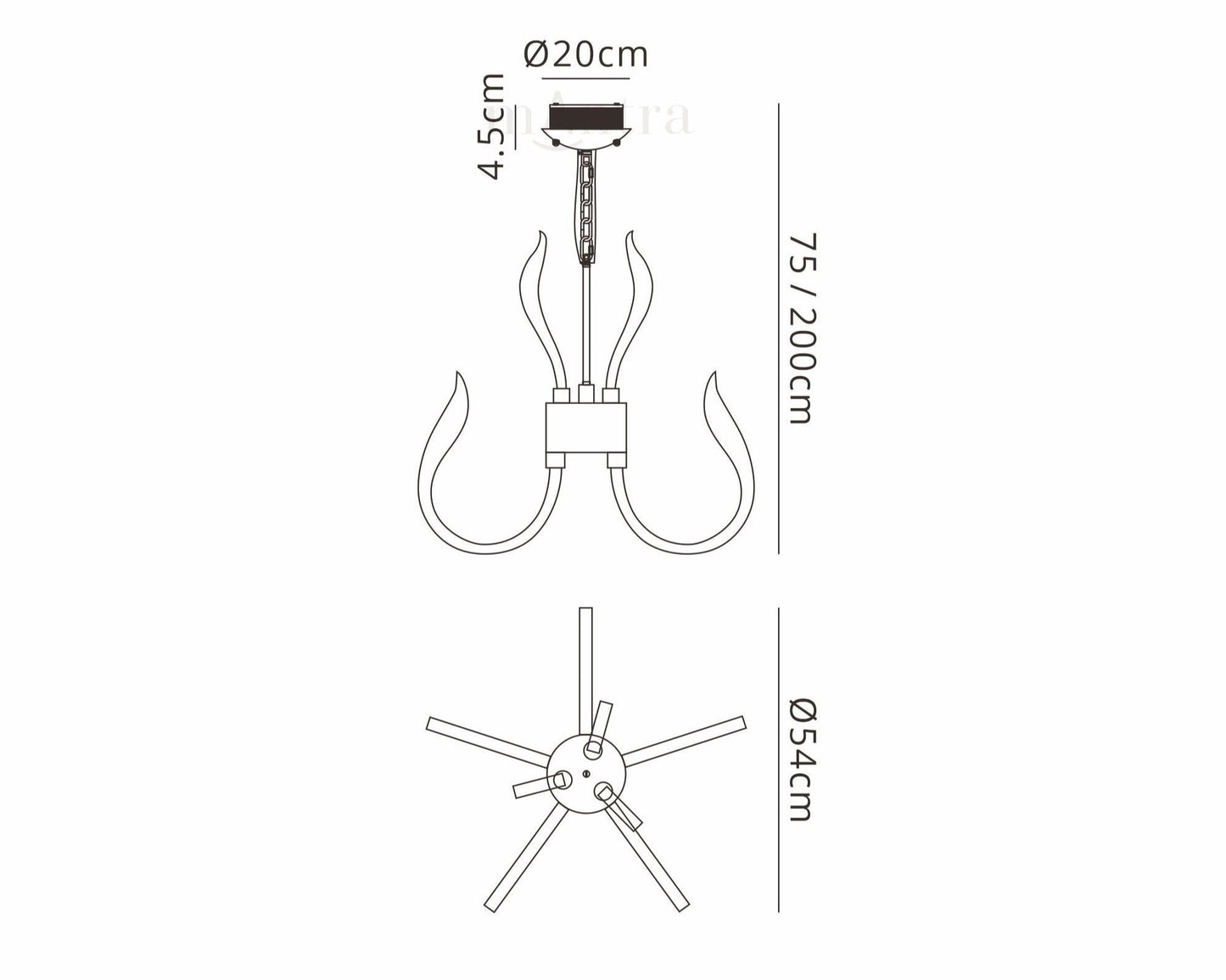 The larger pendants have an integrated relay switch allowing a reduced illumination. An optional black velvet chain cover is also included.