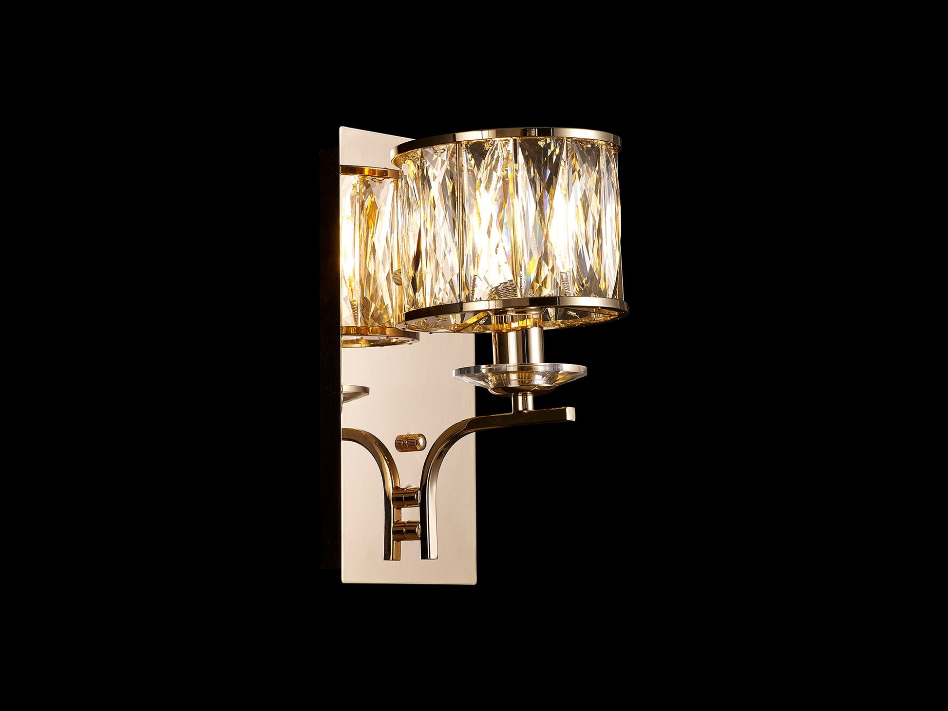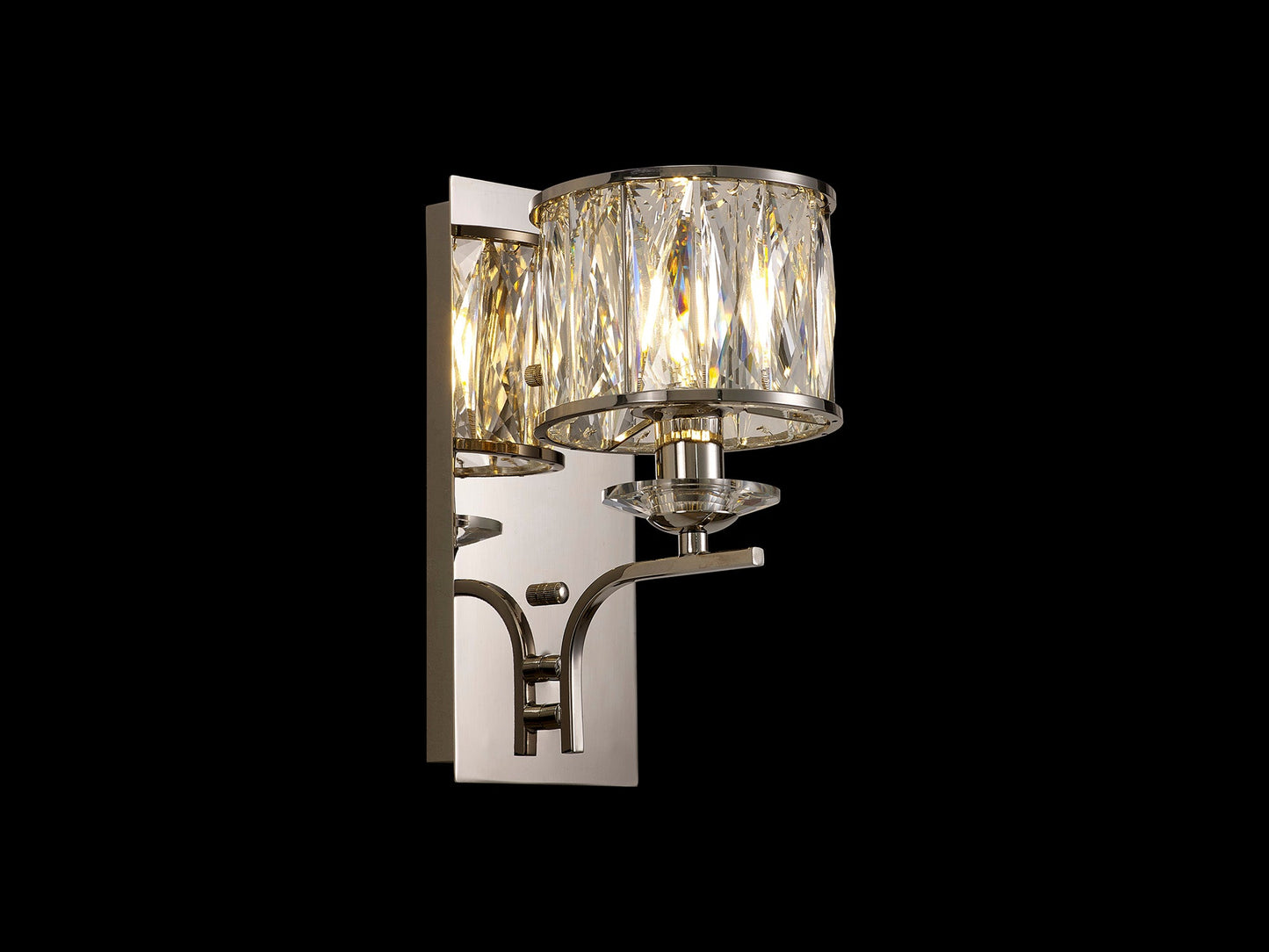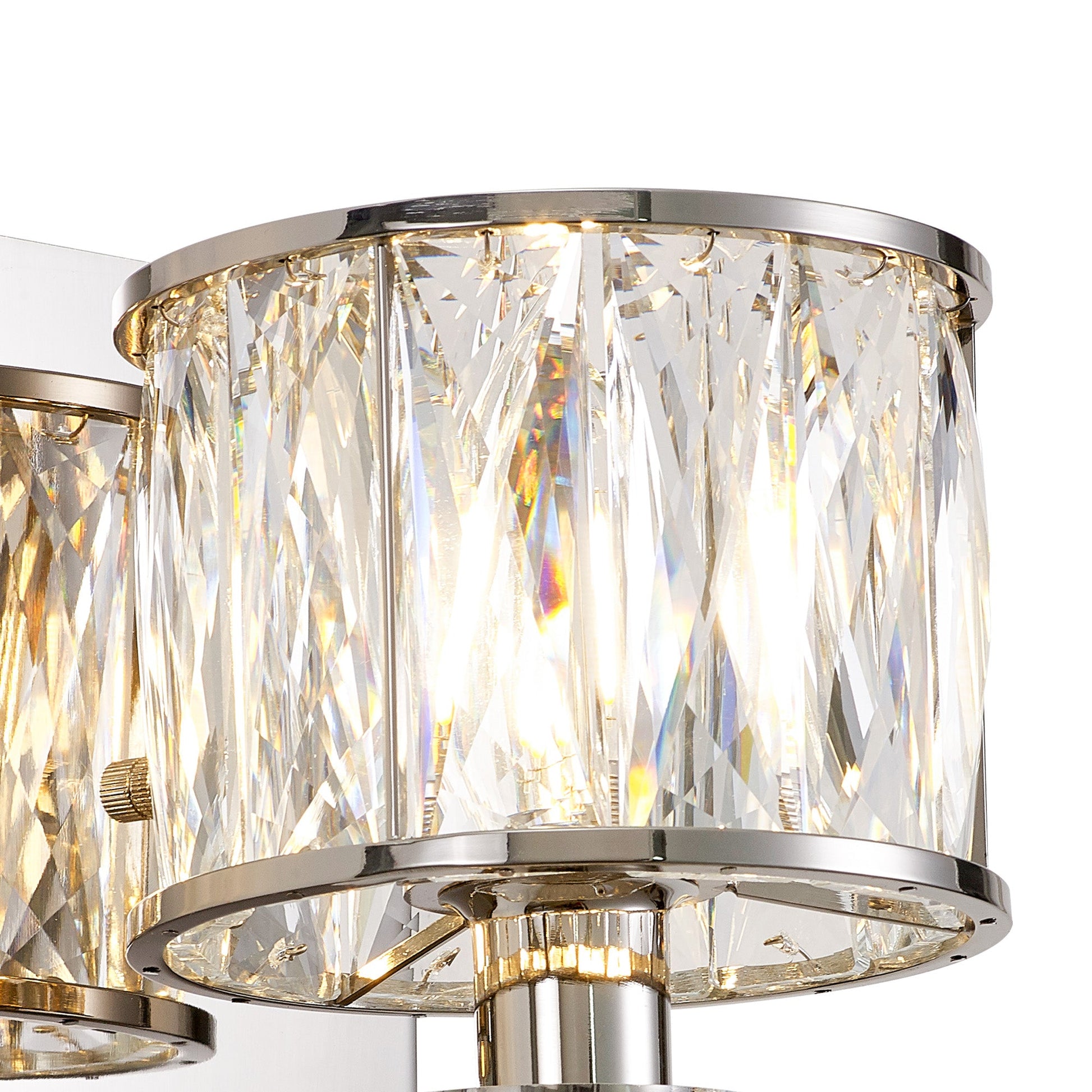 The sleek upwardly curved arms which support the lampholders are embellished with beautiful crystal sconces. All of the pendants, ceiling lights and complimenting wall lamps available within the Vivienne range can be selected with a polished nickel or french gold colour finish.