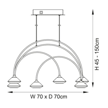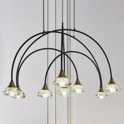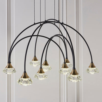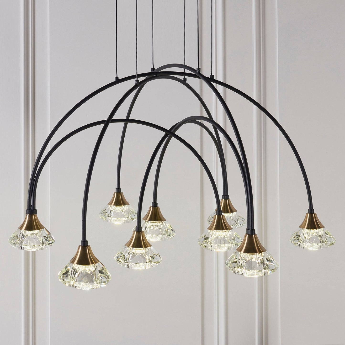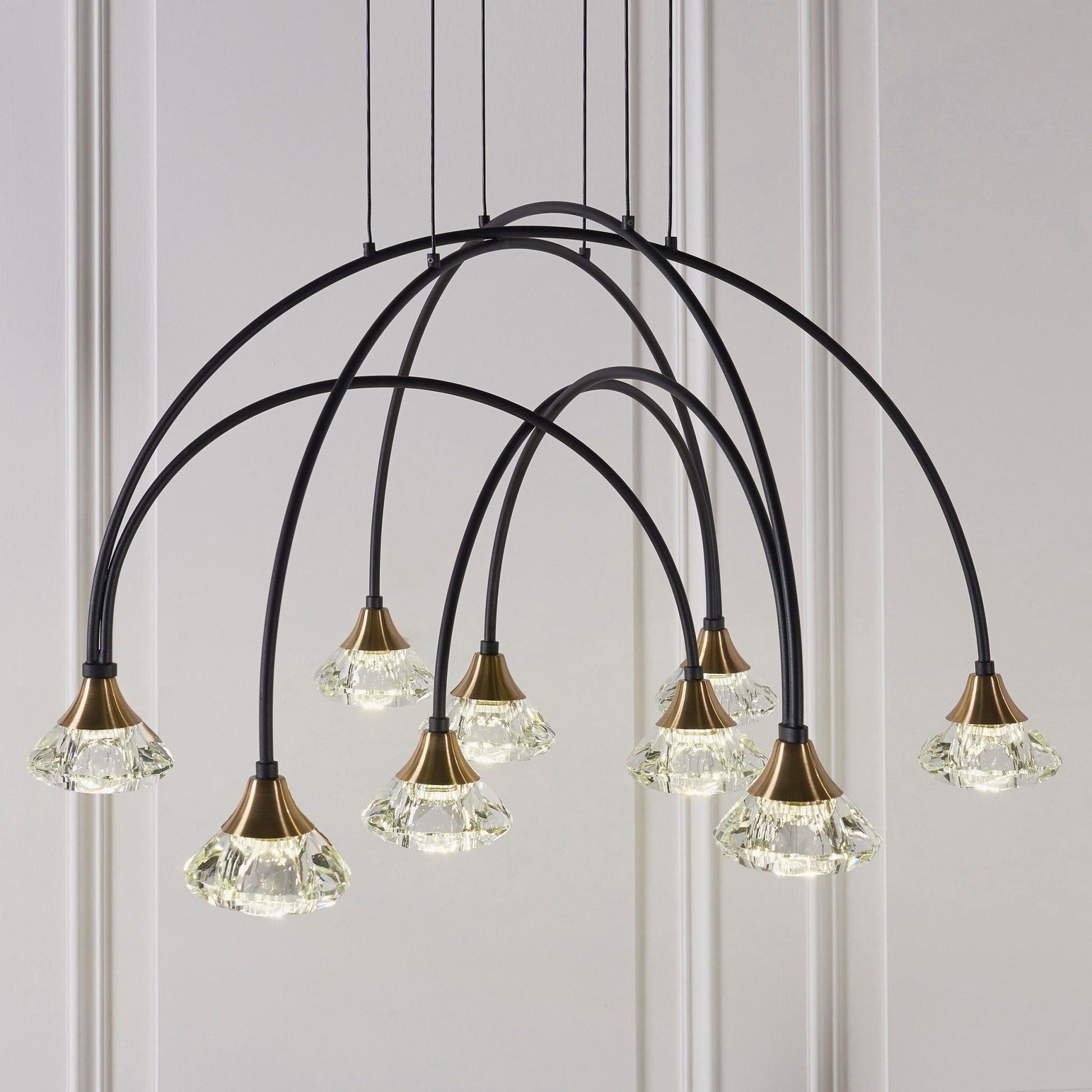 This Willow Circular Curving Pendant offers classic styling, a modern edge, and contrasting metalwork, all complemented by an integrated LED and Crystal Finish.